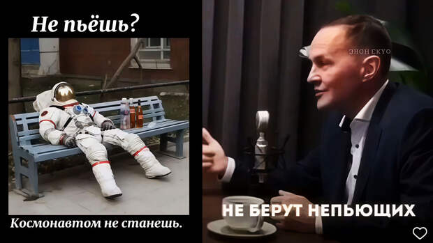 Как оказалось, в космонавты не берут непьющих людей, граждан с татуировками, а также веганов, диетчиков и прочих мазохистов, которые издеваются над личным организмов в такой короткой, человеческой жизни.