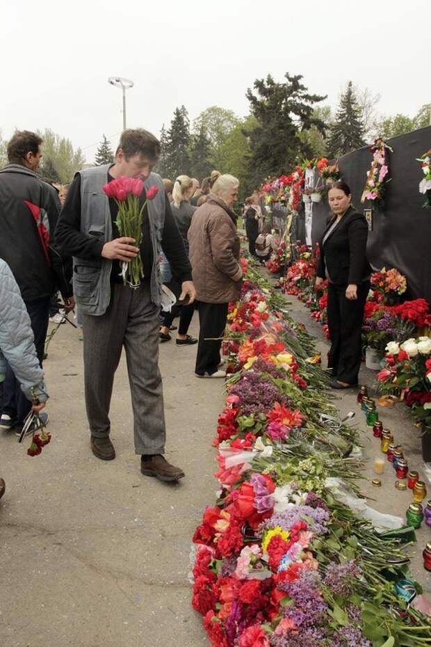 На Куликовом поле нет знамен и камуфляжа. Там, над площадью, на пятиметровом флагштоке, реет одинокий государственный флаг. Там выпустят, поминая, в небо черные шары. Там охапки весенней сирени,и тюльпанов, и гвоздик у затянутого черным крепом забора.