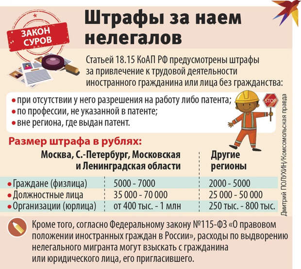 Крупные компании за прием на работу нелегалов наказывали и раньше. Но с ужесточением миграционного законодательства «попасть на деньги» все больше рискуют и простые граждане. Как же теперь и забор поправить, и кошелек не оцарапать? «Комсомолка» разобралась вместе с экспертами.