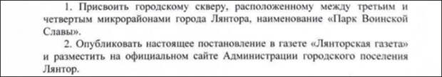 Лянторцы хотели назвать новое общественное пространство Парком Воинской Славы - этот вариант обсуждался в местных пабликах. Предчувствуя народное возмущение, в мэрии оговорились, что желающие могут в указанный срок подать свои предложения.