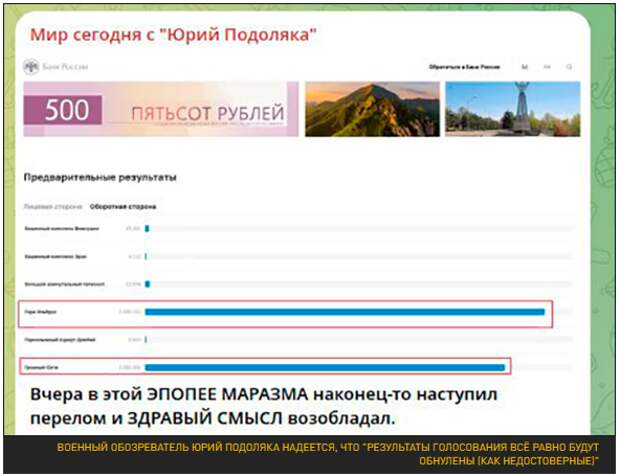 Эксперт-востоковед Николай Севостьянов прокомментировал ситуацию с отменой результатов голосования за символ для новой 500-рублевой банкноты. Его мнение публикует военный корреспондент Юрий Котенок.