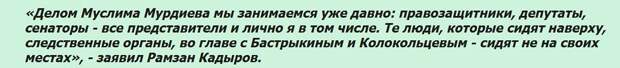 Всемогущий и влиятельный Рамзан Кадыров заявил, что Бастрыкин и Колокольцев «сидят не на своих местах», «беспредельничают, сидя в креслах» и их за это обязательно накажет Всевышний. Рамзан Ахматович ещё и авторитетно пообещал, что Муслима «они не посадят» и «он скоро освободится».