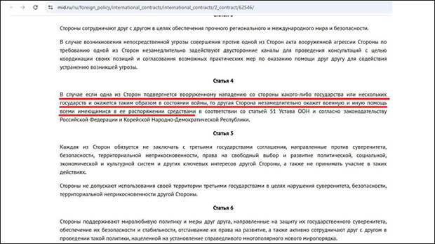 Фрагмент договора между Россией и КНДР. Скриншот страницы сайта МИД России