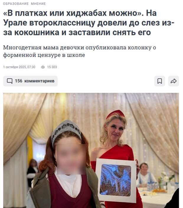 Вопрос о том, почему в русских школах ношение кокошника запрещают, в то время как к хиджабам претензий не возникает, остаётся открытым.